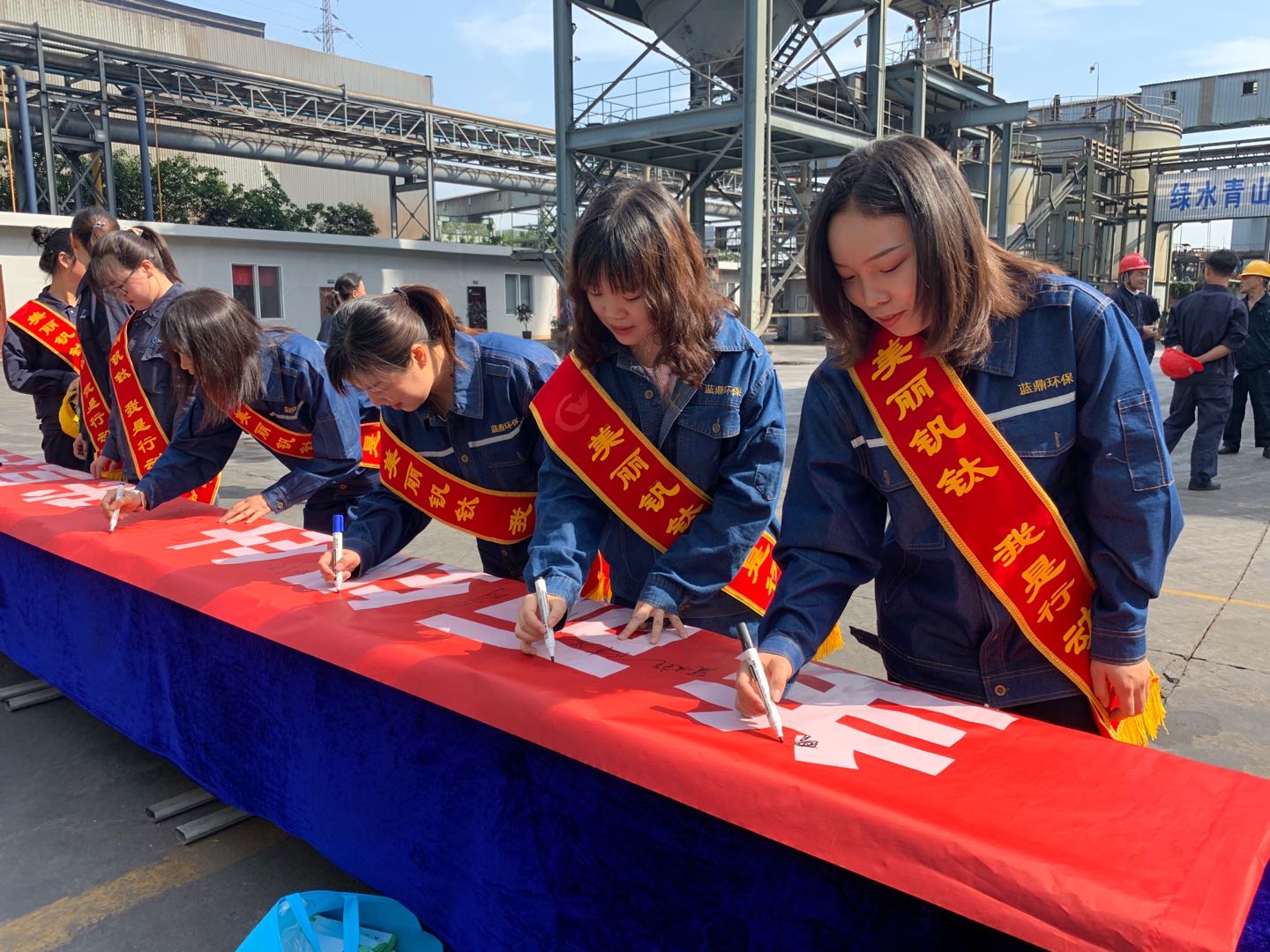 倡議書宣讀結(jié)束后,全體人員依次在“美麗釩鈦,我是行動(dòng)者”橫幅上簽下自己的名字。名字=承諾,銘記使命,干好環(huán)保工作,為建設(shè)美麗釩鈦貢獻(xiàn)力量。