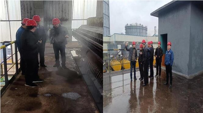相關方單位領導一行第一站參觀新區(qū)水處理釩鉻處理工序,現場交流廢水處理流程和壓濾機合格水檢驗,第二站對蒸發(fā)濃縮廢水資源化利用項目生產運行、產品去向處置、質量管控和蒸發(fā)現場鹽硝分離進行參觀交流。